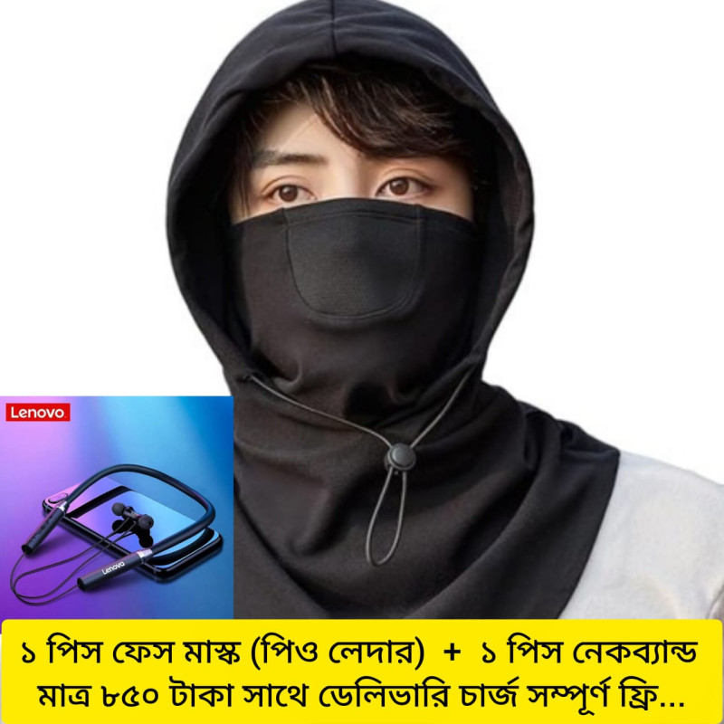 ফ্রি ডেলিভারি ১ পিস মাস্ক (পিও লেদার) + ১ পিস নেকব্যান্ড)
