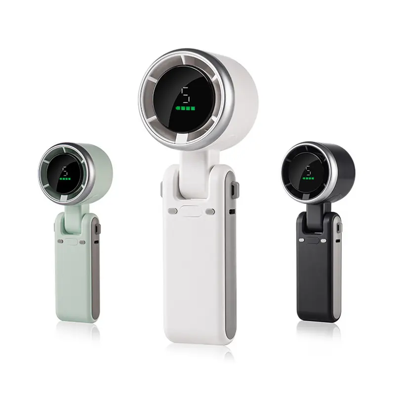 - 4-in-1 Multi-Purpose Handheld Fan : Flat grip design that fits your palm, classic and stylish handheld fan As a neckhanging fan, the unique design of adjustable angle allows you to easily adjust the wind direction, for blowing directly the air to the body or face 180-degree damping folding design, after 90-degree folding, as a desktop fan can be stably placed flat on desktop; after 180-degree folding, it can be fully stored and easily put in a pocke